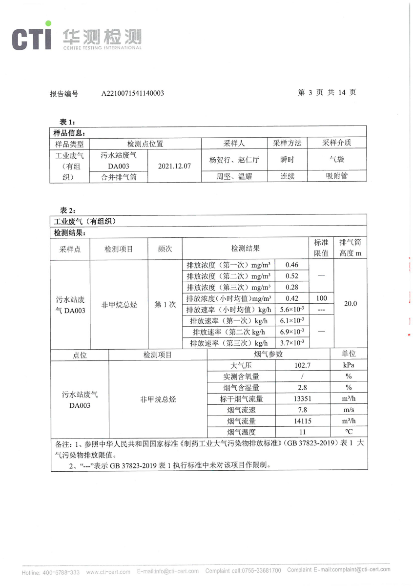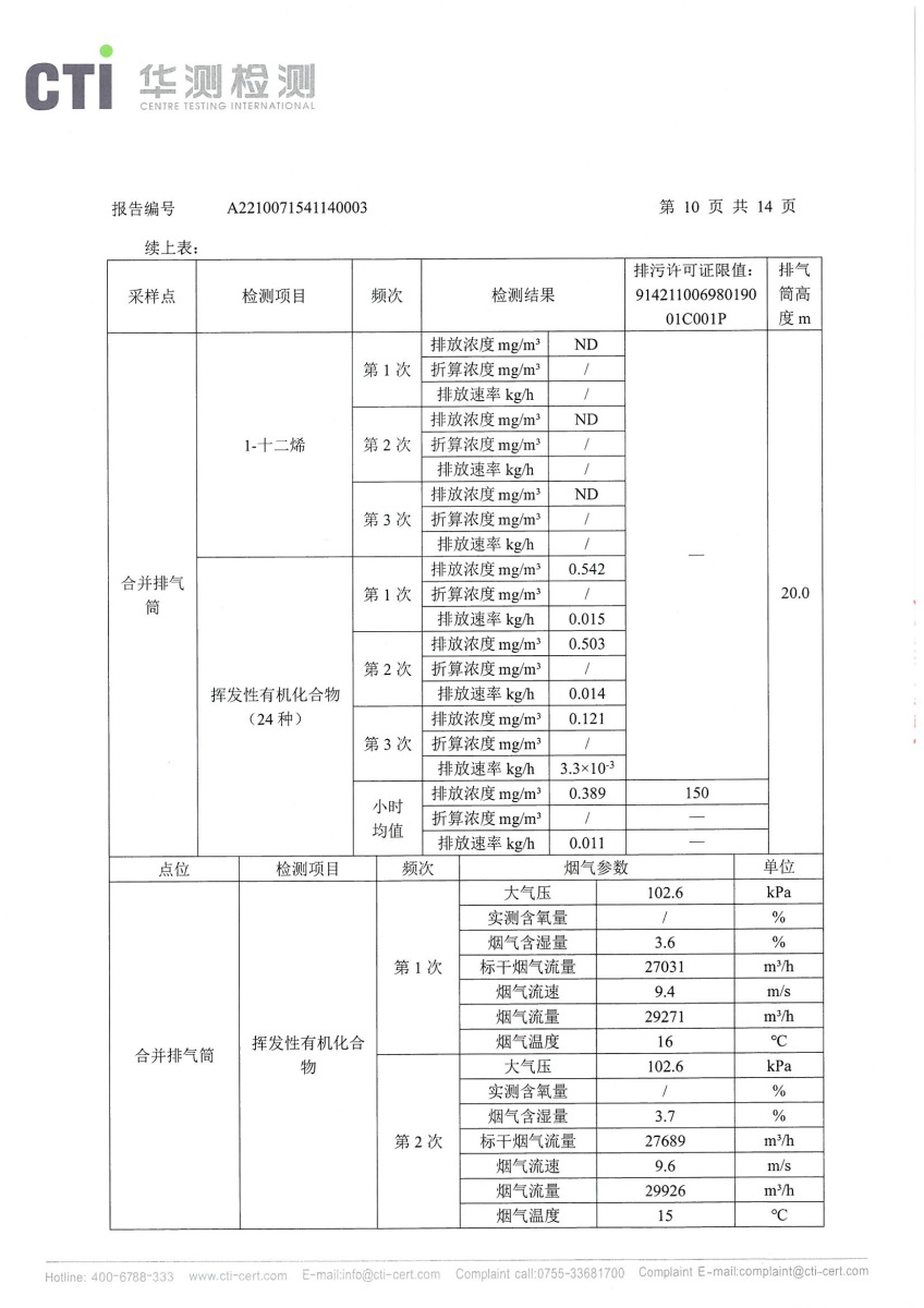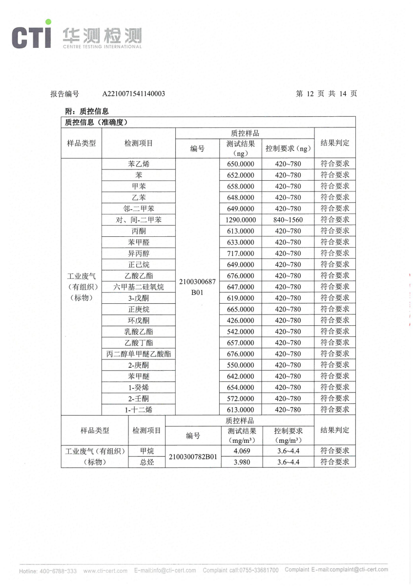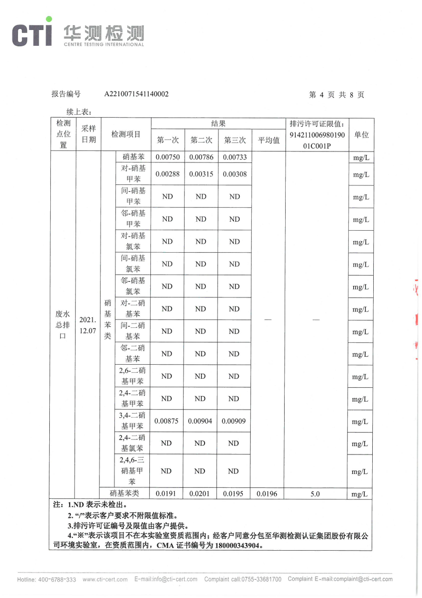 2021年第四季度,公司按照国家企业安全生产标准,对公司所排出的污染源,委托第三方进行抽样检测,详细的检测报告如下
