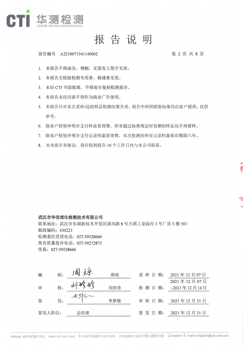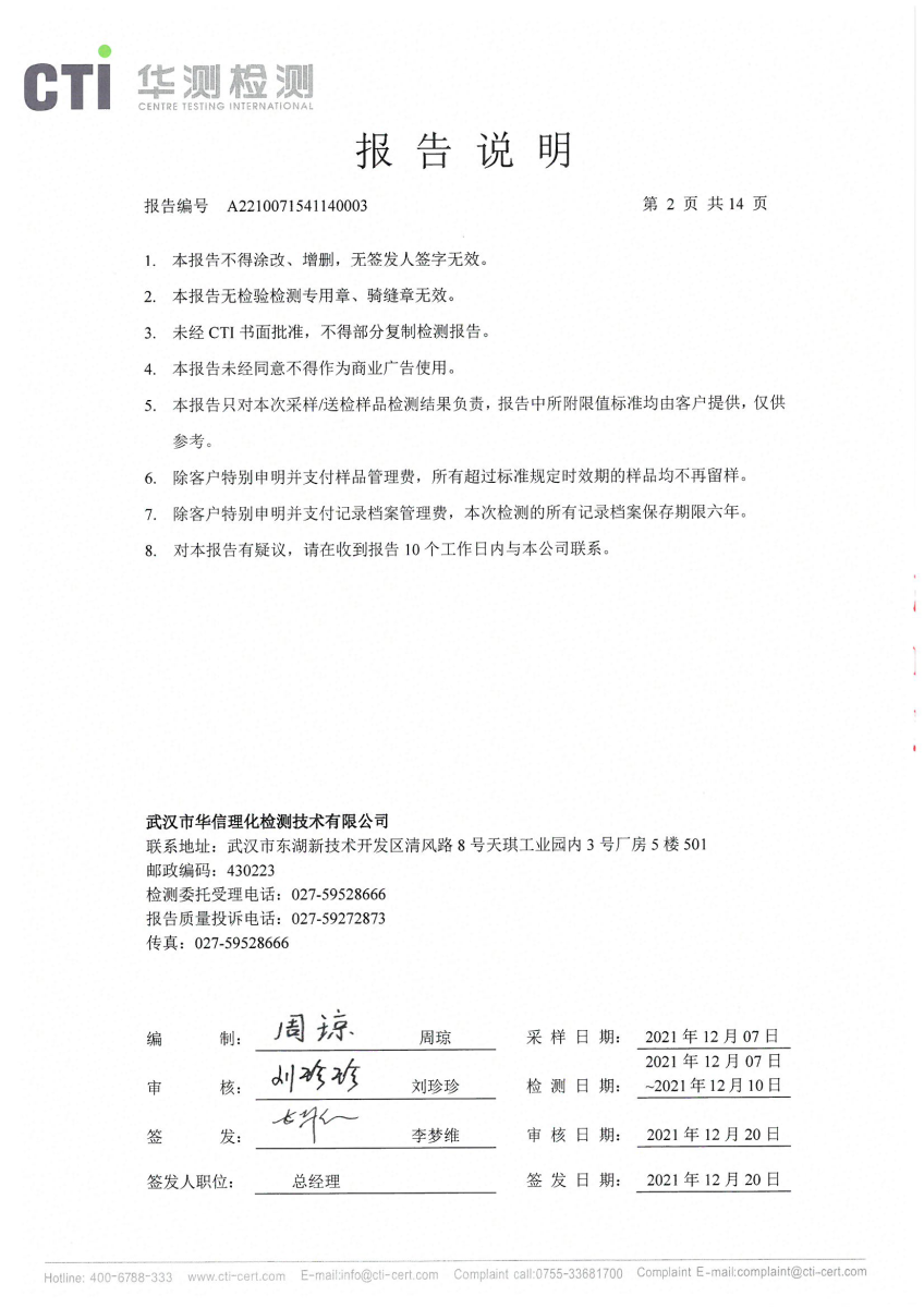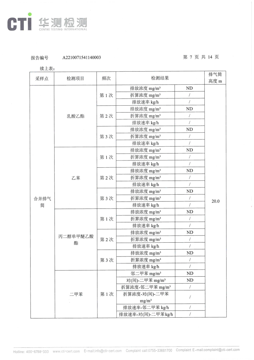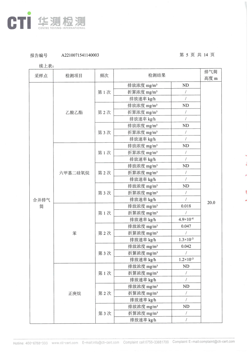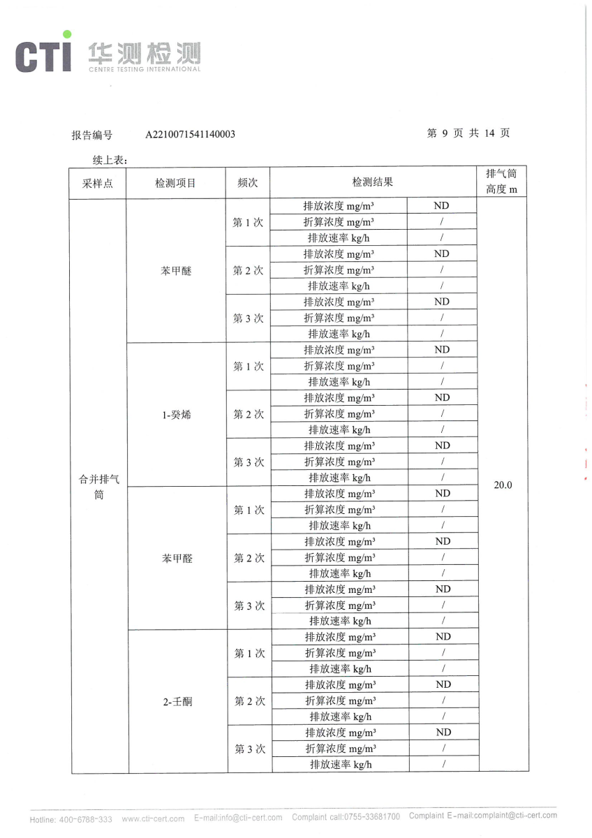 2021年第四季度,公司按照国家企业安全生产标准,对公司所排出的污染源,委托第三方进行抽样检测,详细的检测报告如下