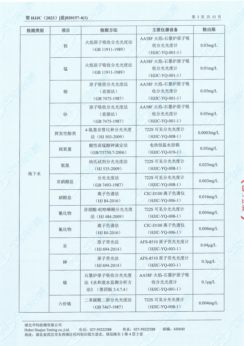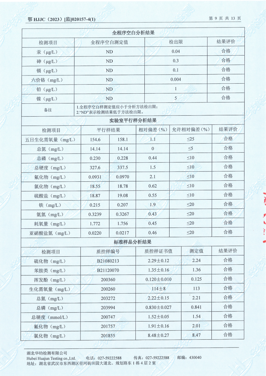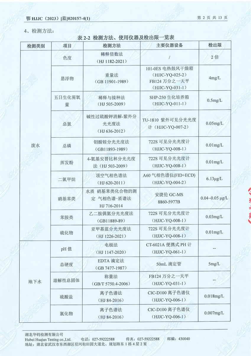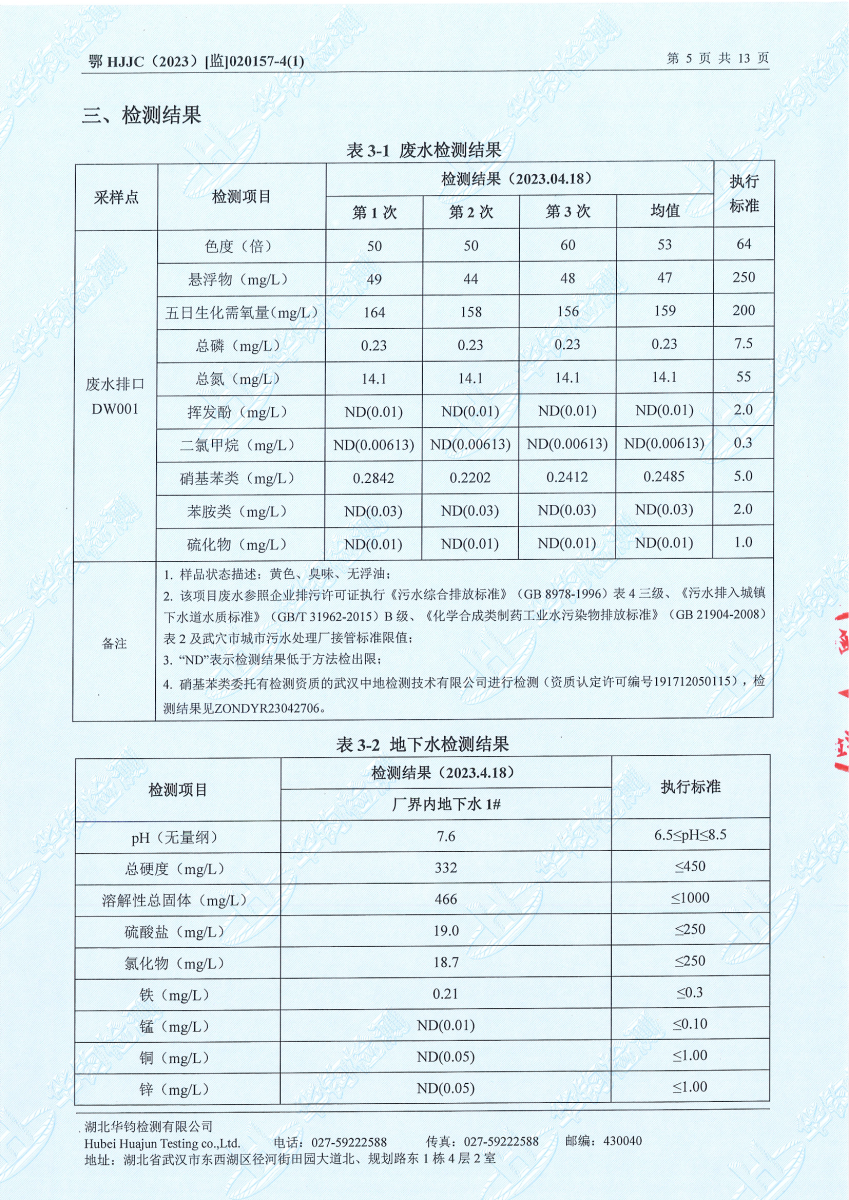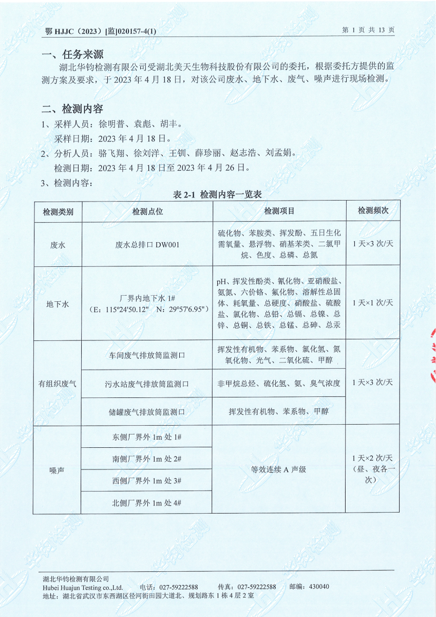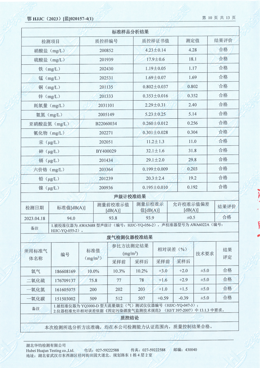 2023年第二季度,公司按照国家企业安全生产标准,对公司所排出的污染源,委托第三方进行抽样检测,详细的检测报告如下