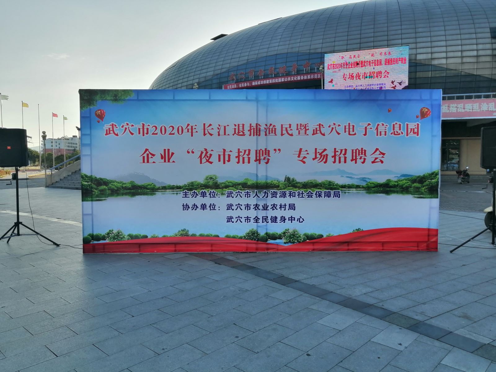 •         武穴市2020年长江退捕渔民暨武穴电子信息园,企业“夜市招聘”专场招聘会于8月13日,在武穴市体育广场隆重举行。本次专场招聘会由武穴市人力资源和社会保障局主办,武穴市农业农村局、武穴市全民健身中心协办。
