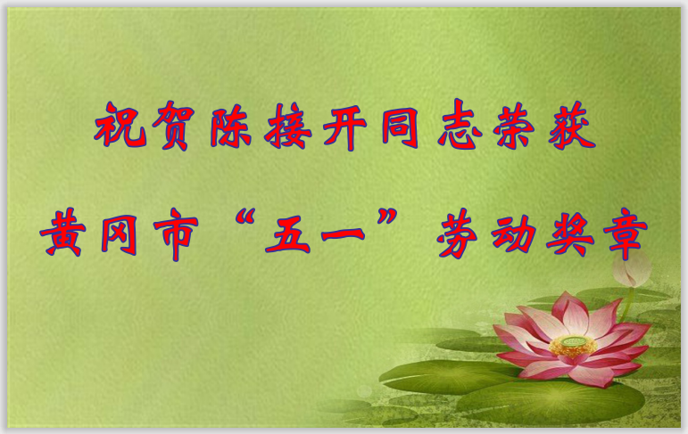 2020年11月11日上午9时许,湖北省武穴市总工会在公司会议室授予陈接开同志荣获黄冈市“五一”劳动奖章,此奖章由黄冈总工会颁发,武穴总工会转授。
