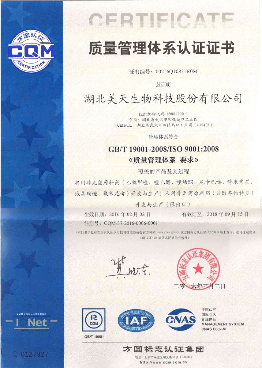 质量管理体系认证证书顺利颁布